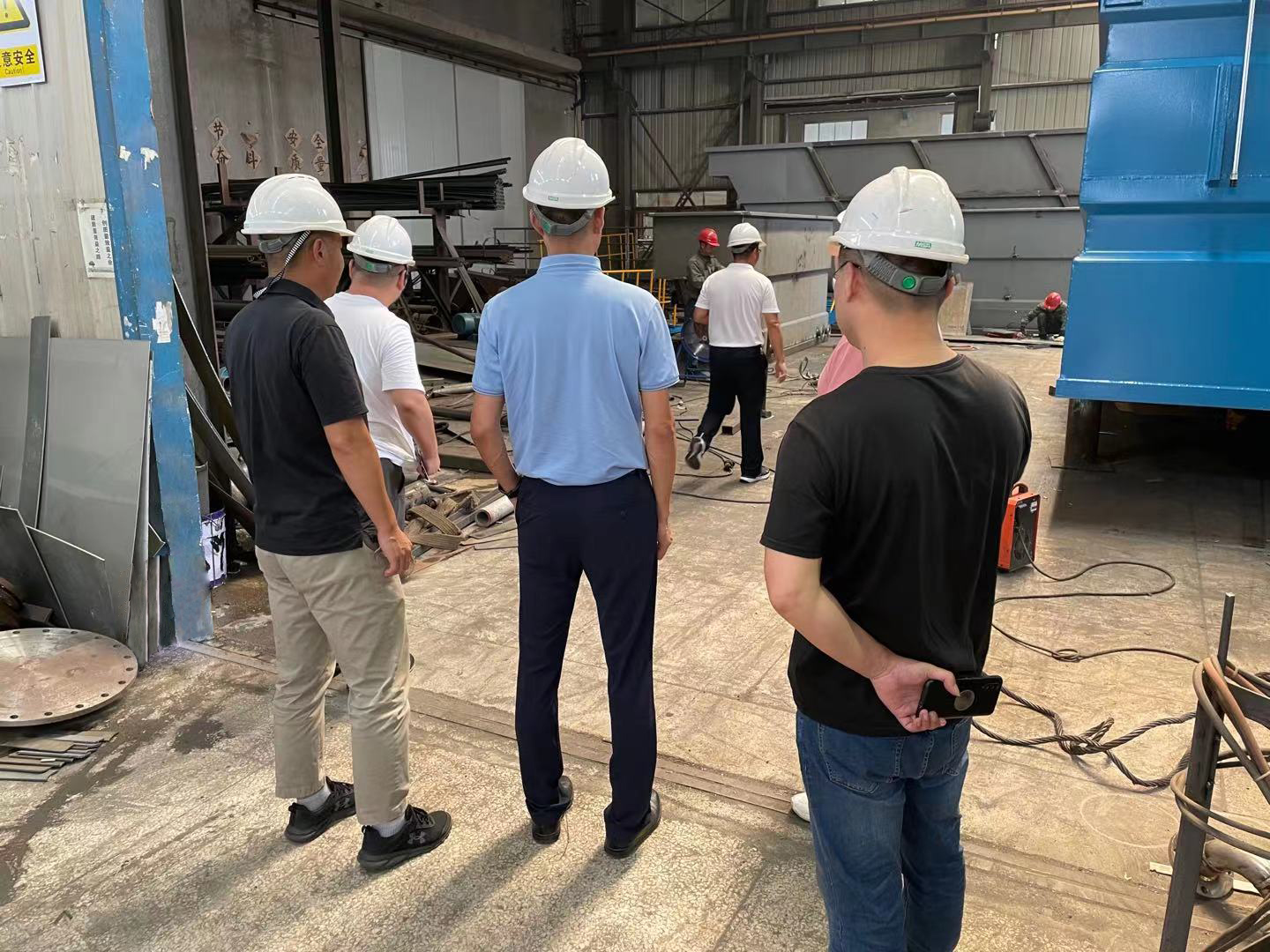 热烈欢迎新沂市李局长、苗厂长一行莅临我司参观交流 2021年9月1日,新沂市李局长、苗厂长一行莅临我司广州云顶集团3118acm环保设备有限公司。同我司周总针对污水处理方面进行了相关的讯息交流分享,并参观了工厂。在周总等领导的陪同下,新沂市李局长,苗厂长一行参观了公司生产区域,对公司的概况,质量把控,产品生产进行了全面的了解。